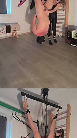 Submissive in Bondage, Ass Licking a Beautiful Brunette Domme!