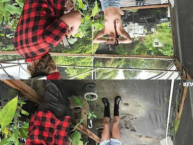 Horny pig-tailed bitch in boots initiates sex in the greenhouse