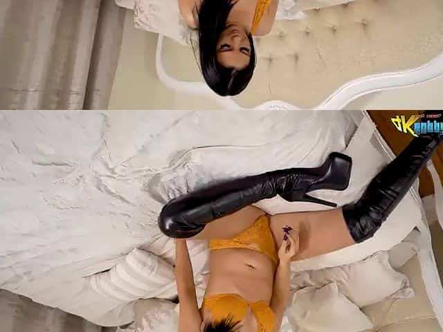 Amazing babe in white boots loves to masturbate