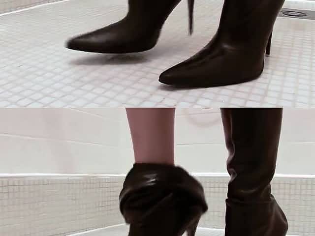 Brunette Milf In Big High Heeled Boots Gets Her Titties Fuck