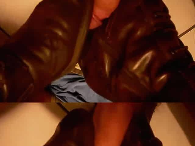 Having sex with new leather boots for the first time