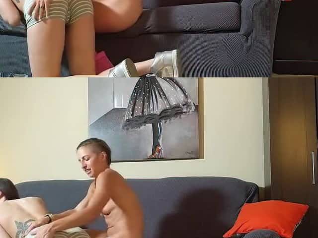 Fucking in the boots on cauch