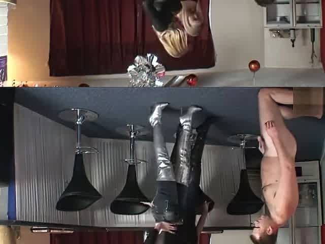 Hot babe in black boots with high heels is doing nasty stuff for her kinky neighbor