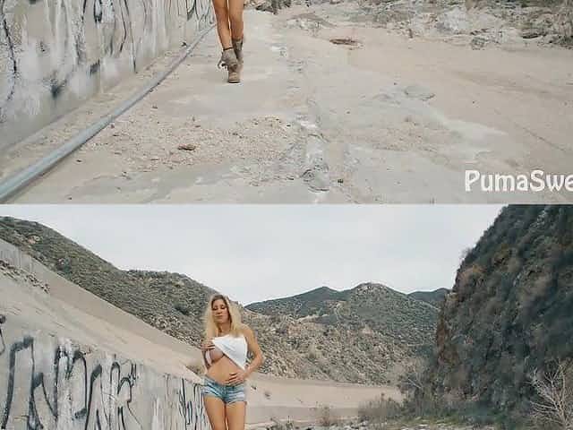 Puma Swede Spreading Pussy Outside in the Desert!