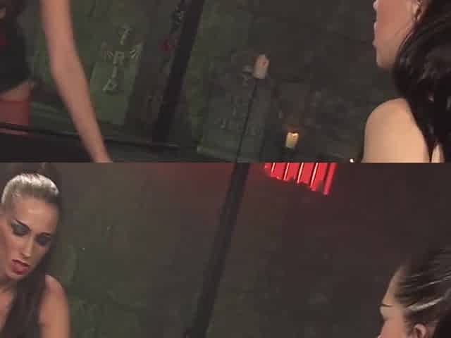 Lesbo sub licks mistresse boots and eating her snatch