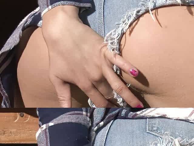 Upskirt asian petite tugging stranger POV