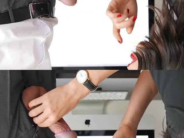 Sexy office lady is happy to oblige to the handjob requests from her boss