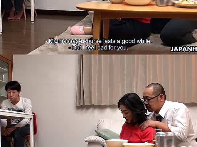 Marina Matsumoto has a visit from her husbands boss and sons friend