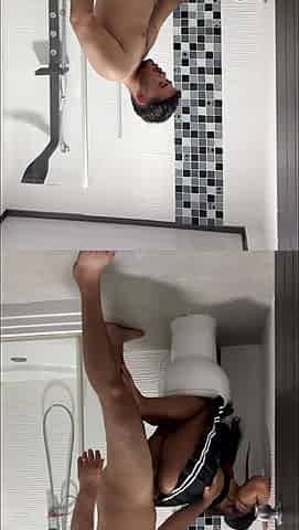 "Cleaning lady caught in the bathroom by her boss and they waste no time"