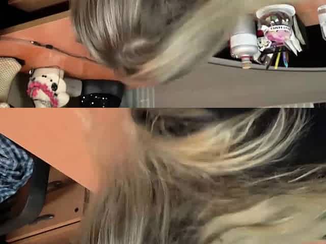Amazing Blond Hair Lady French Blowing Off Her Boss