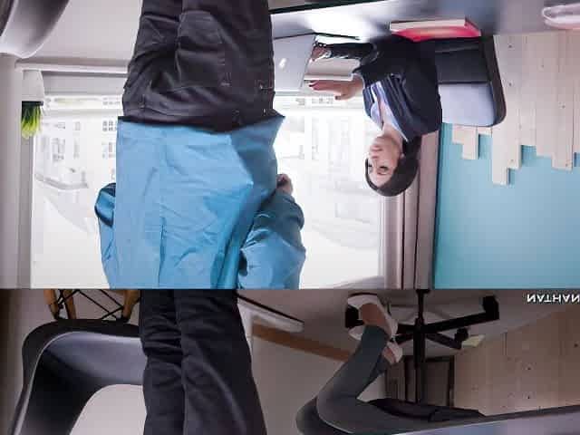 Slim Oriental teen interviewed then drilled by her future boss