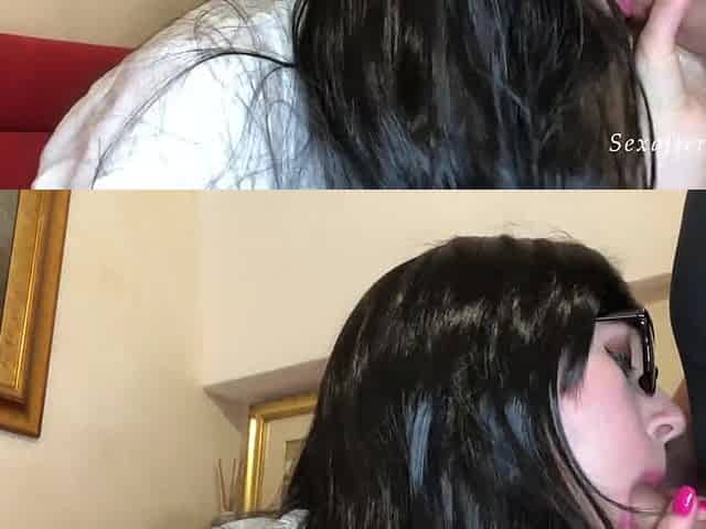 Secretary got sucked her boss - large jizz flow on glasses by Sexafterwedding
