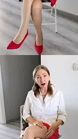 Close-up action with my boss's sexy wife in a mini-skirt