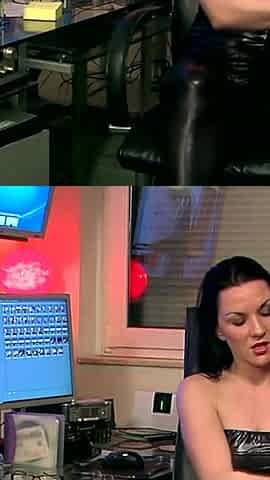 My lesbo boss finds out I'm having an affair with her secretary and bangs her in front of me.