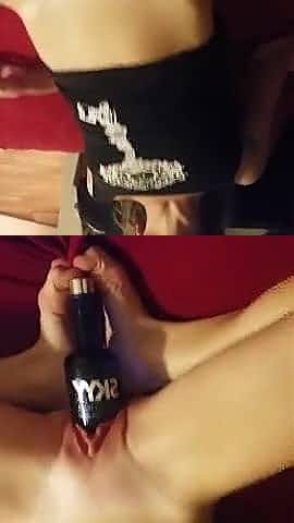 Girl Masturbating with Wine Bottle Toys by snahbrandy