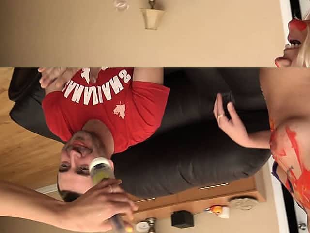 Nasty blonde teen uses a bottle of champagne of please her needy cunt