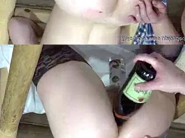 Webcam girl pushes beer bottle up her cunt and ass