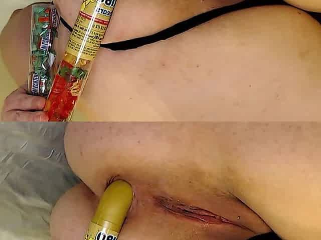 Fisting and fucking her ass with a giant bottle