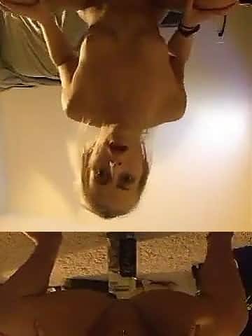 Blindfolded skinny wife masturbates with a wine bottle as her man films
