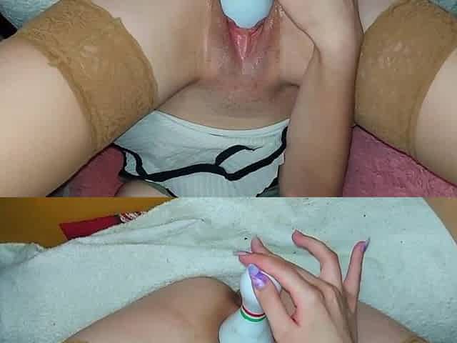 Hot Blondie Mastrubte with Small Bottle Untik Shaking and Creamy Orgasm
