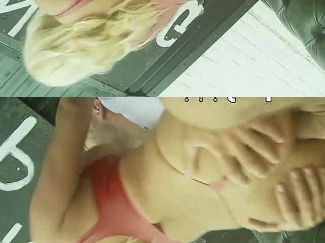 Sexy Blonde Babe With Big Boobs Strips Bra