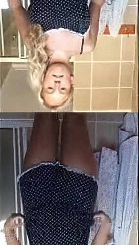 She puts on the stockings and then I touch her tits in a bra
