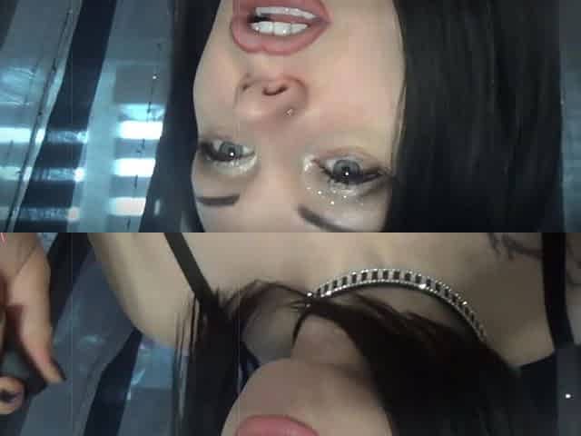 Blonde bombshell gives a deepthroat blowjob and finger play