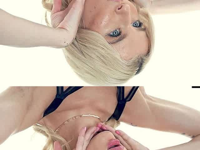 Blonde Emma Rosie with natural tits wearing black lingerie