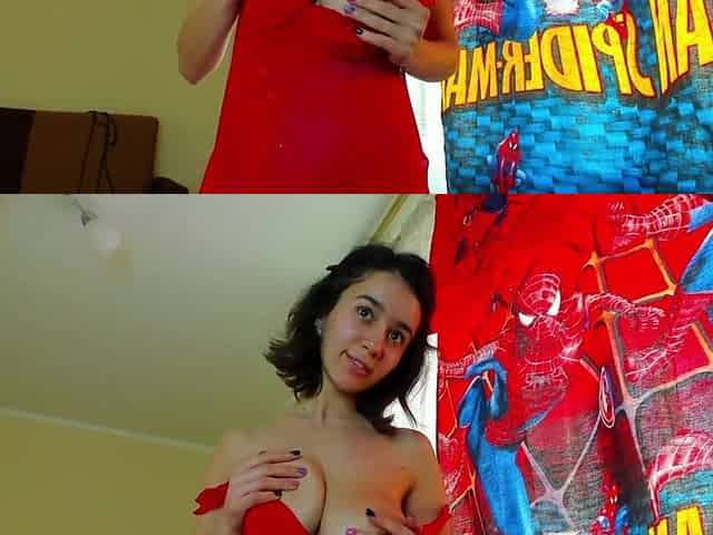 Bra and thong-clad brunette seduces on webcam