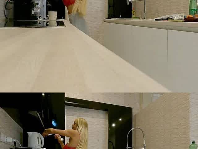 Short Miniskirt No Panties Horny Big Boobs Blonde Wife with a Bra Shows Her Ass and Shaved Pussy