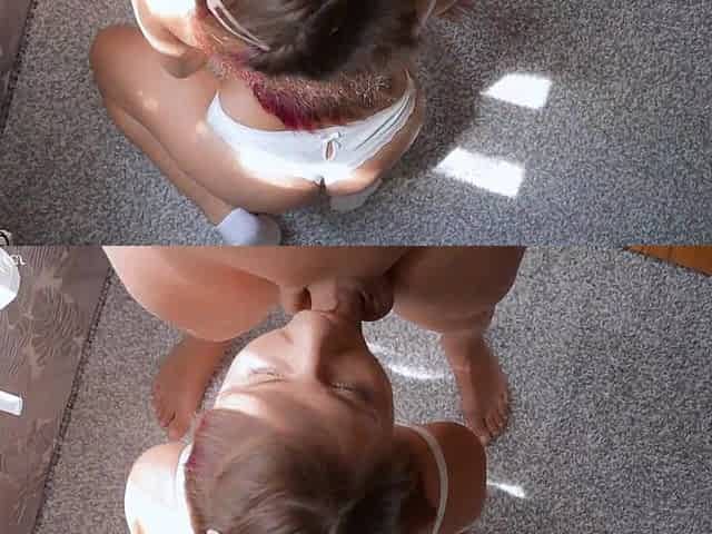 My redhead girlfriend throating my stepdads shaft
