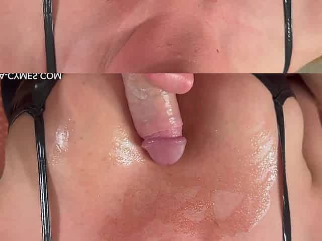 Tits job in latex bra and pierced nipples, first foreskin play, blowjob and a lot cum.
