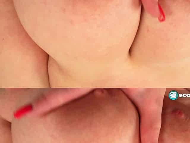 Busty Milena Velba in nursing bra attends to her heaving bosom