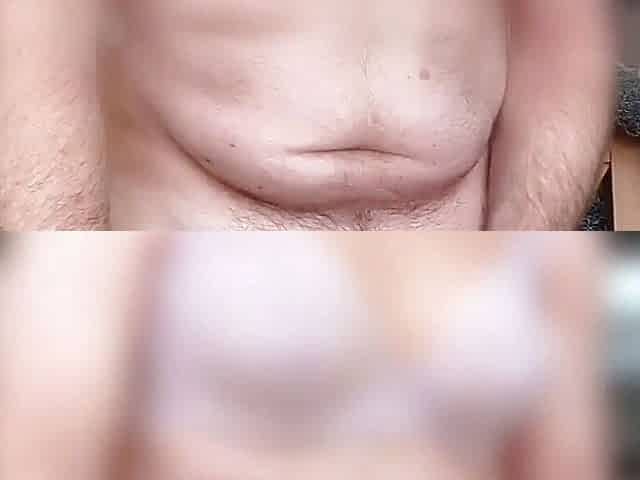 Pink mini skirt poka dotted Bra and painties ! Lots of lotioned Belly rubbing