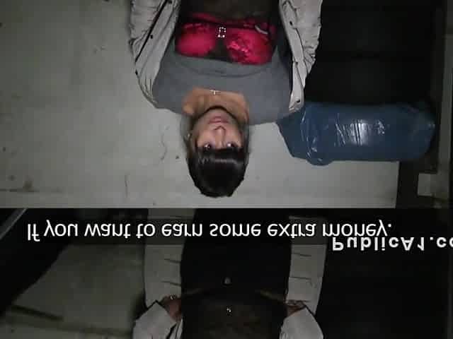 Euro babe banged in public from agent. Sexy brunette Euro amateur babe flashing boobs in pink bra in some quiet basement in publ
