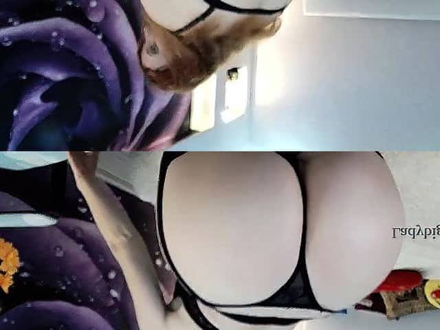 She puts on the stockings and then I touch her tits in a bra