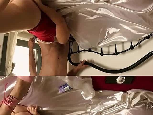 1681 - French Amateur Slut, Clothed Satin Red Dress, White Bra and Panties, Heels, Doggystyle, Blowjob, Ass to Mouth