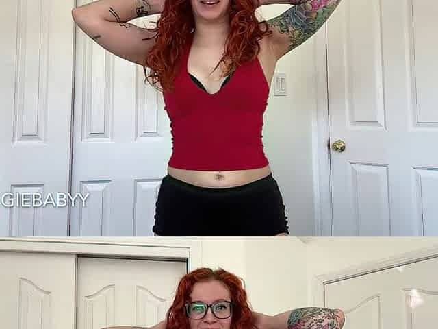 chatty redhead with shaggy hair tries on hot tops in brassiere - veggiebabyy