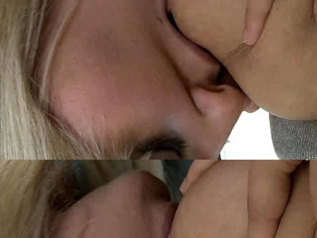 Blonde Jessica Starling wearing sexy lingerie pleasuring her man