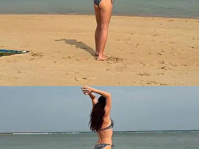 Slim hotty walks along the beach and swims in the sea. meet me