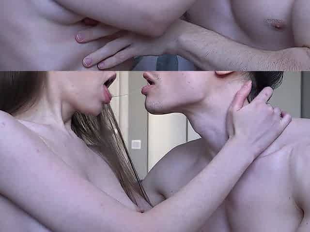 Teen Lovers Kiss Deeply Whilst Parents Are Behind the Door - Via Hub
