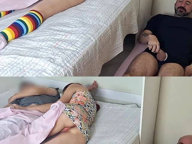 Couple shares room with visitor and wife has sex with husband next to the friend of the cuckold!
