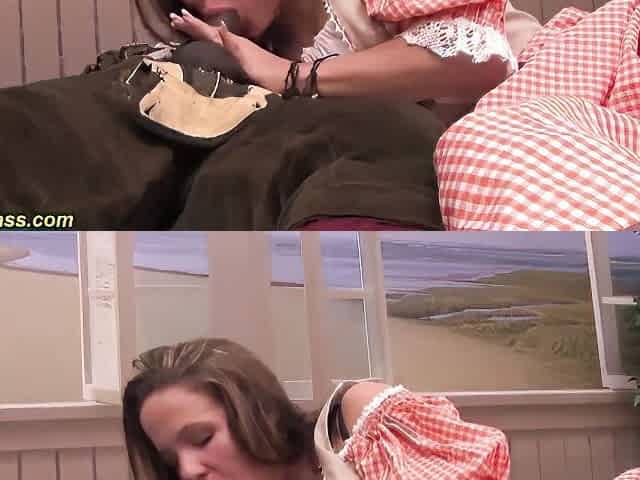 Maid deepthroats and opens her ass to take a lot of cum in the ass