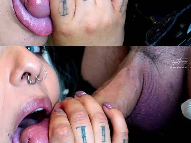 Amy & Ivory - Side View Close-up Blowjob, Deepthroat & Sticky Cum Finish