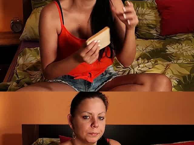 Brazilian MILF Sol Soares with small tits gets down and dirty with her skinny blonde stepdaughter