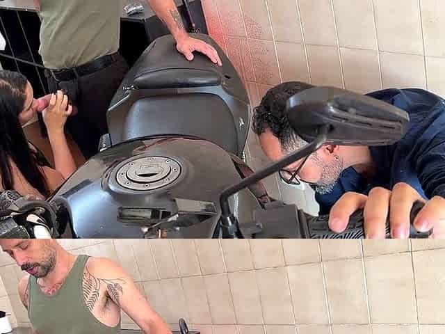 The biker's beautiful hotwife takes care of his needs