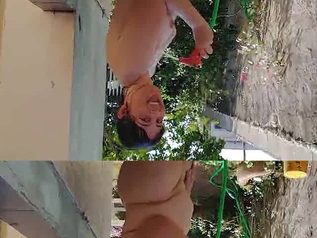 The delivery man caught my wife showering naked in the street