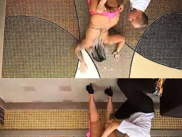 Diana Raia from Brazil while she is in the tub accepts the penetration inside her hairy pussy from the muscular lover