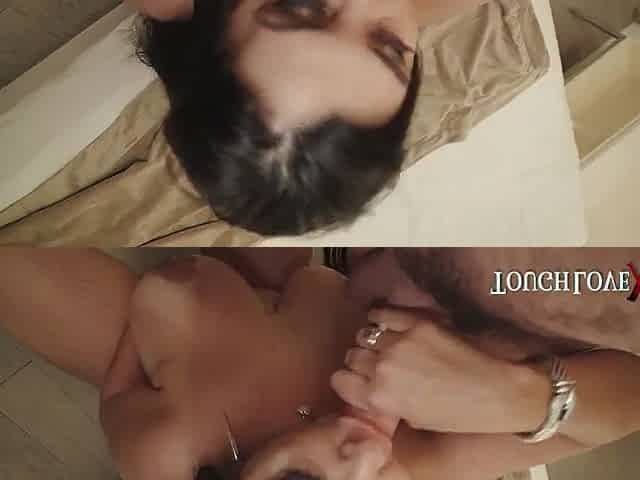 Hot married chubby slut moaning and cumming while spitting on her gifted lover