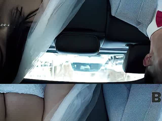 VIP4K. Sexy bride in white dress moans loudly while getting fucked in the wedding limo